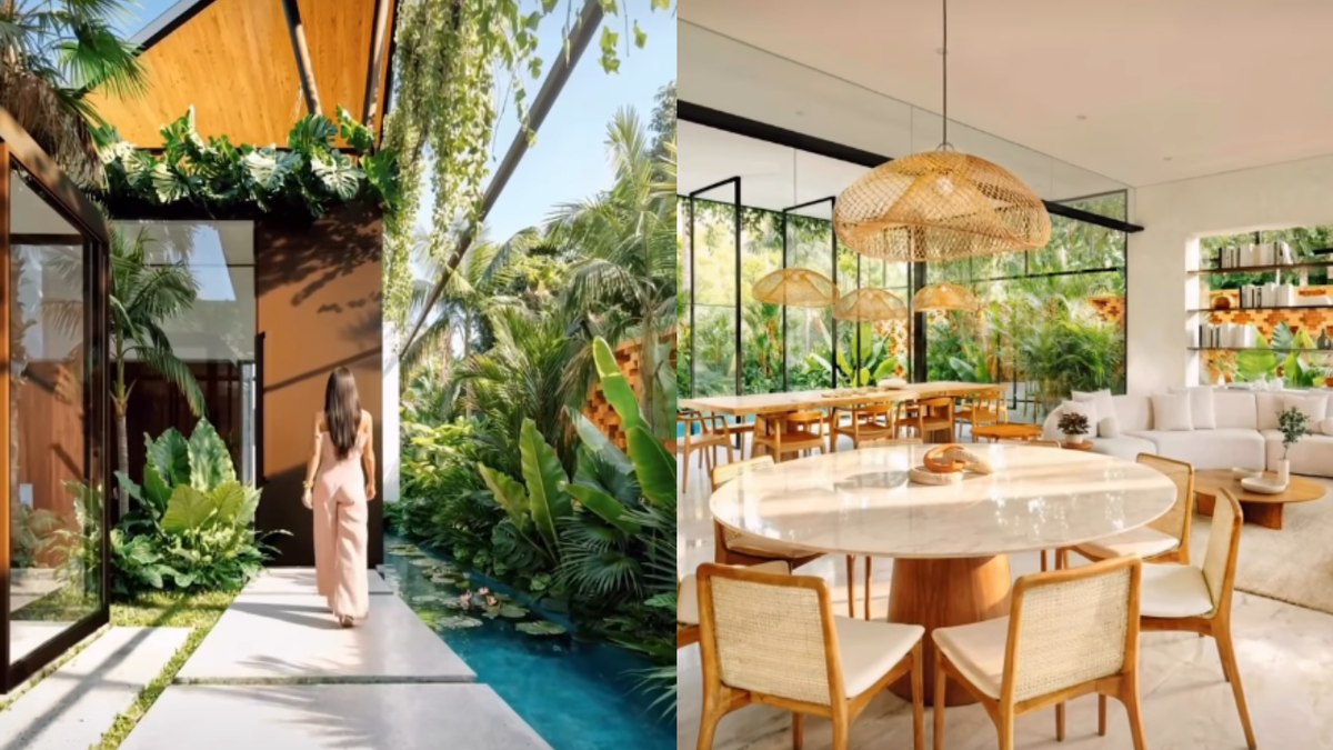 O projeto, dos arquitetos Vitor Pessoa e Laurent Troost, destaca-se por uma estrutura moderna que privilegia paredes de vidro, garantindo que a floresta “entre” na casa através de iluminação natural e ventilação cruzada em todos os cômodos. A fachada é inspirada em uma maloca (habitação comunitária indígena). Já a decoração das salas é em estilo clean, com móveis brancos e em tom de madeira.