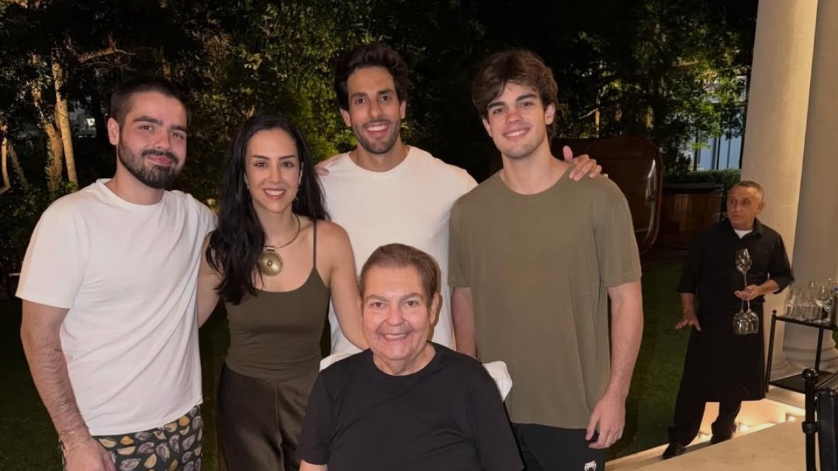 Na foto, compartilhada nas redes sociais por João Silva, 22, filho do meio de Faustão, o comunicador aparece sentado em uma cadeira de rodas, acompanhado dos filhos, João, Lara, Rodrigo, de 17 anos e do genro, Julinho Casares, 27.